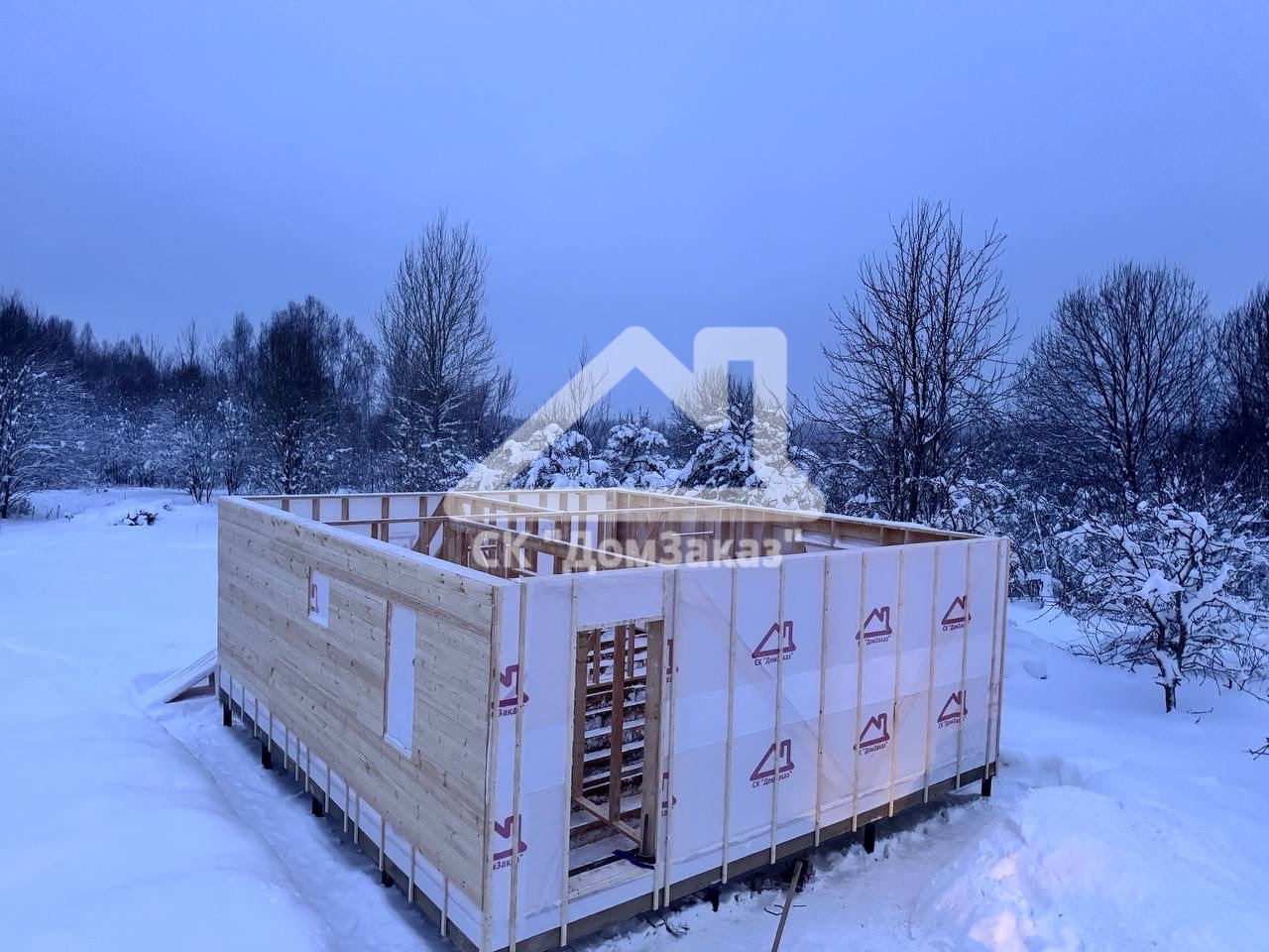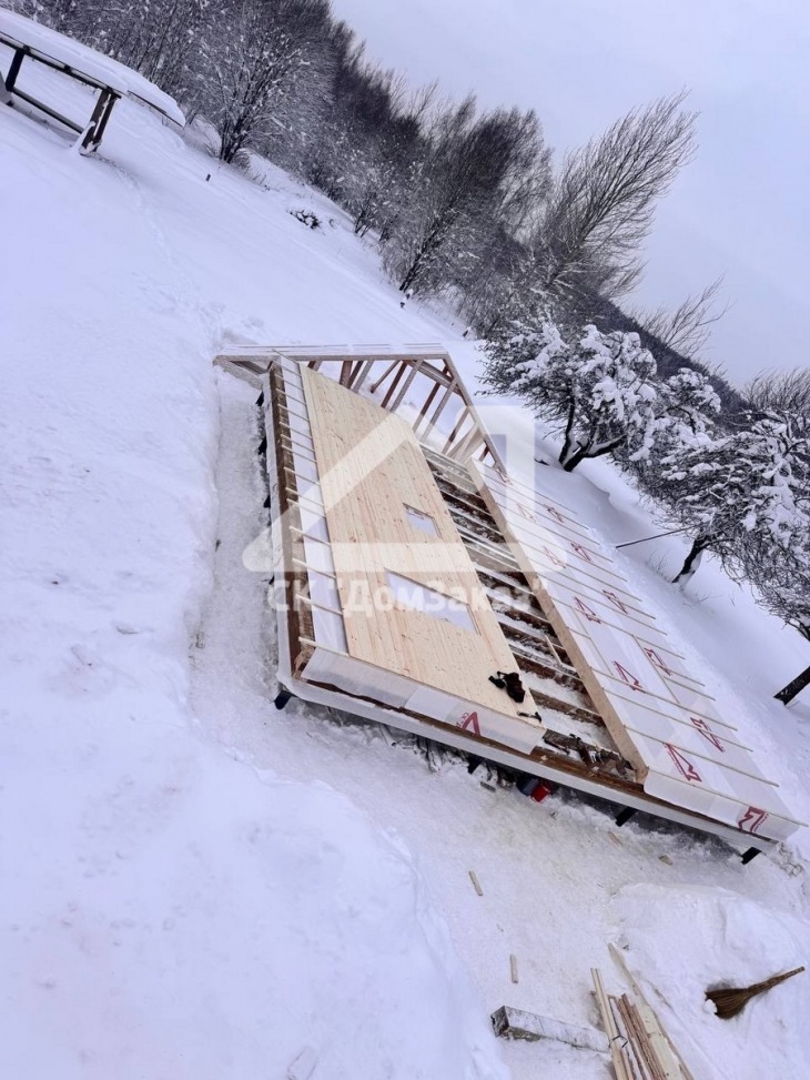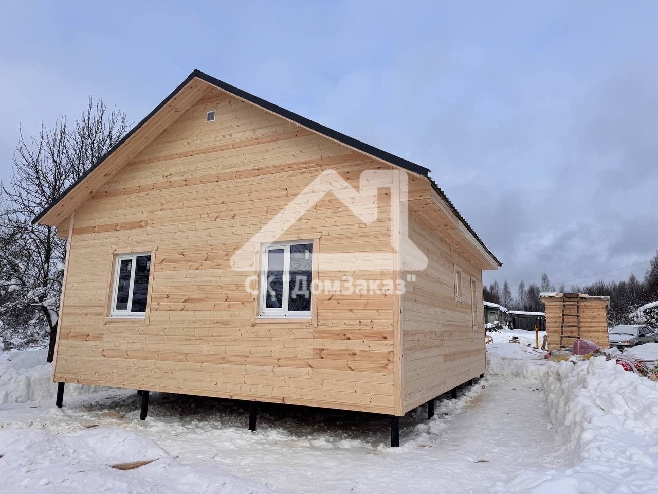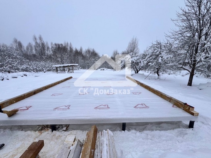 Строительство каркасного одноэтажного дома 7х8 м в д.Губино, Воскресенского г.о, Московской области: наружная отделка имитация бруса камерной сушки, внутренняя отделка – вагонка, утепление 200 мм, окна ПВХ двухкамерные с подоконниками и отливами, кровля металлочерепица, фундамент свайно-винтовой L-3.5м, D-108мм, сетка от грызунов, обработка силовой рамы и чернового пола антисептиком. Бытовка для проживания бригады размером 2х3м.