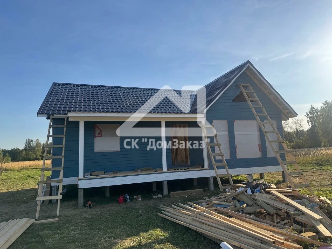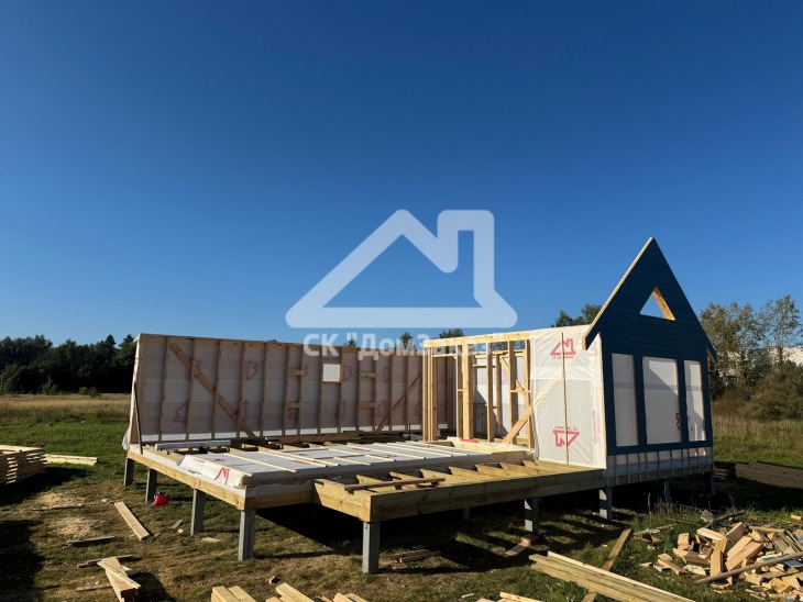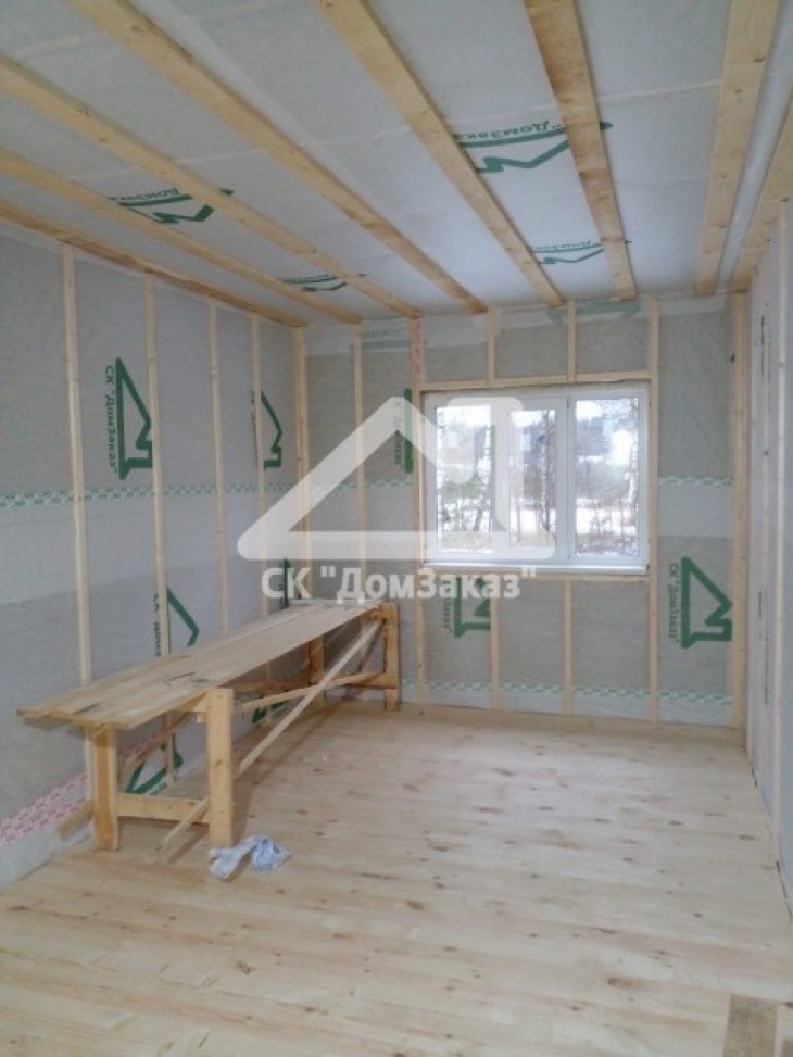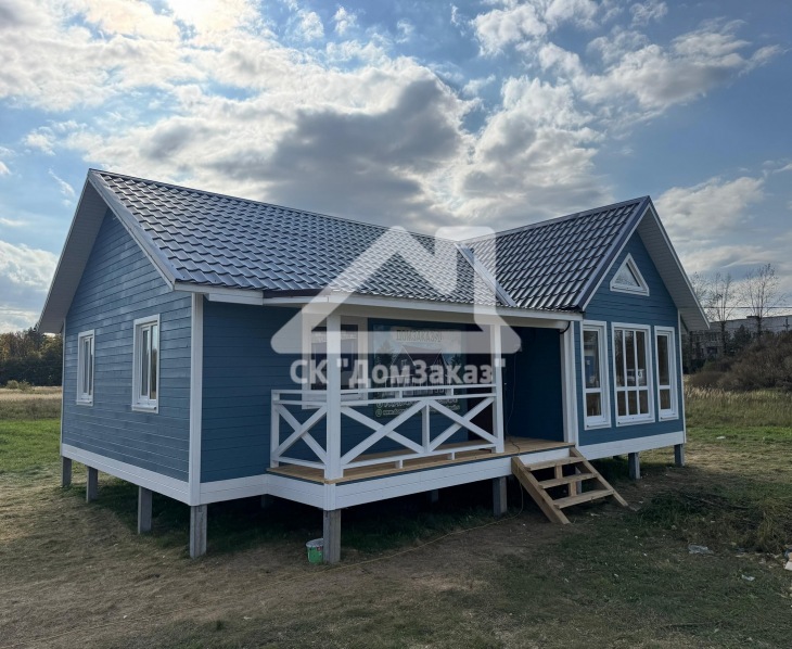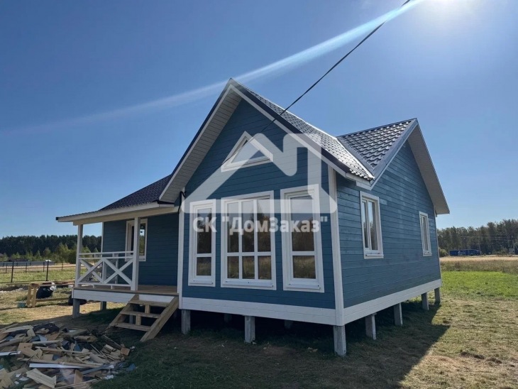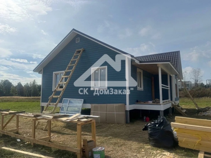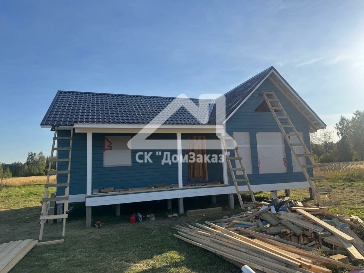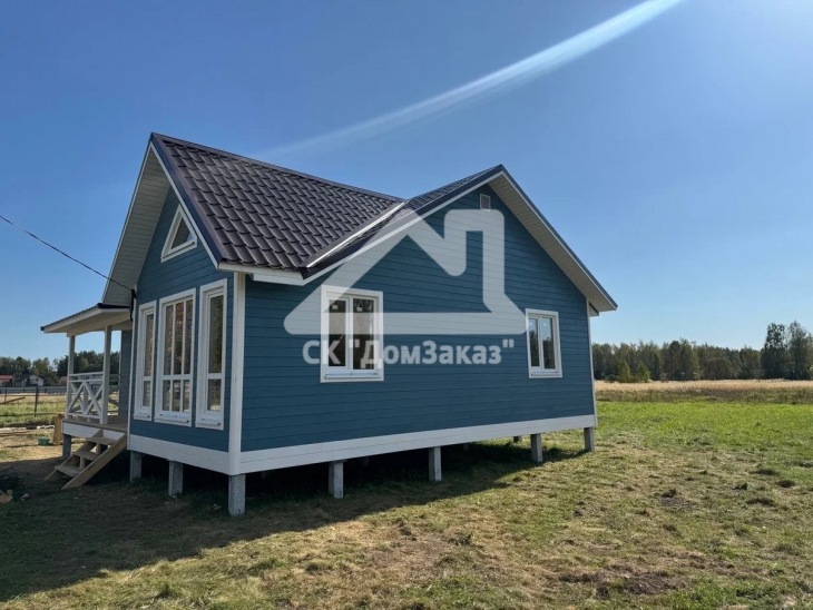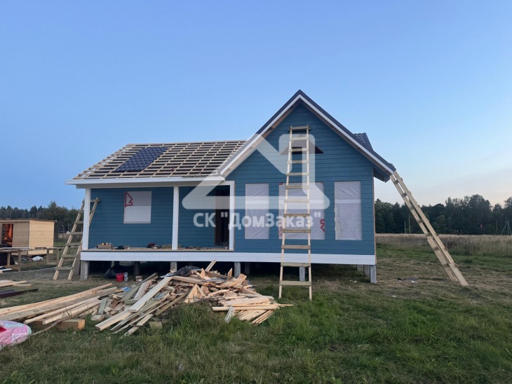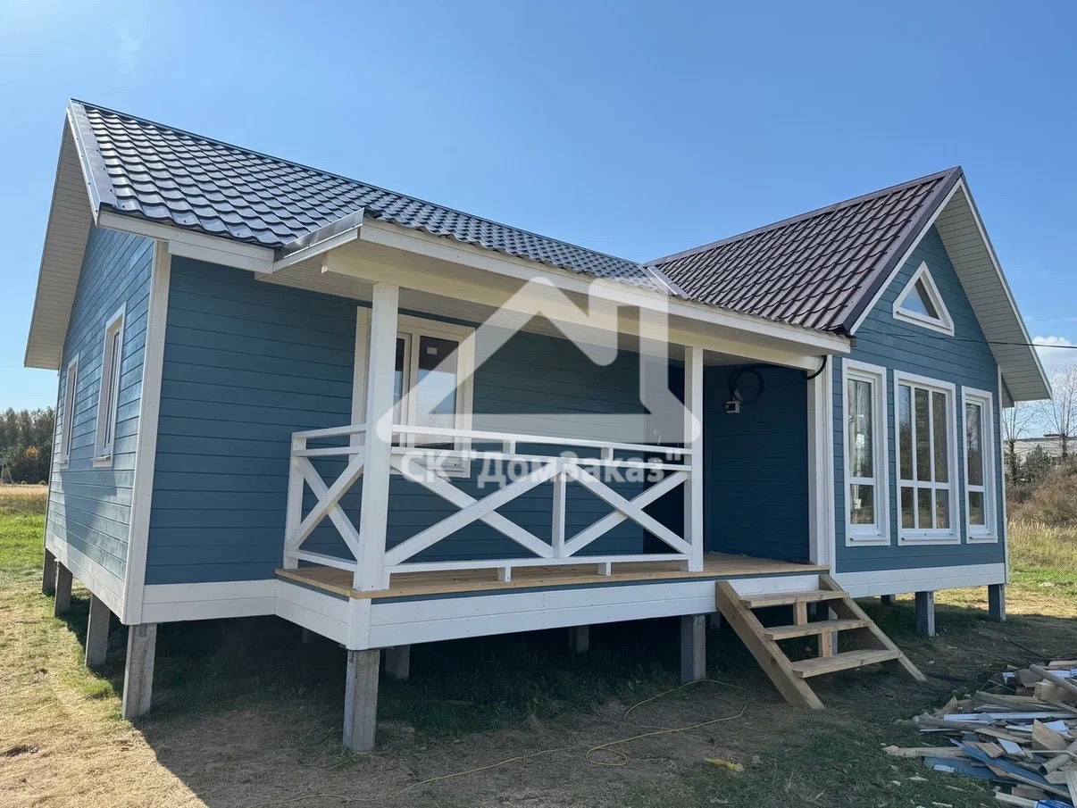 Строительство каркасного одноэтажного дома 8,5х10м в село Ивановское: наружная и внутренняя отделка - имитация бруса камерной сушки, утепление 150 мм, домокомплект камерной сушки, строганный каркас, окна ПВХ двухкамерные с подоконниками и отливами, кровля - металлочерепица, фундамент железобетонные сваи, сетка от грызунов, обработка силовой рамы и чернового пола антисептиком. Наружная покраска фасада выполнена краской Tikkurila Pika-Teho Classic в цвете 4901. Входная металлическая дверь с терморазрывом.