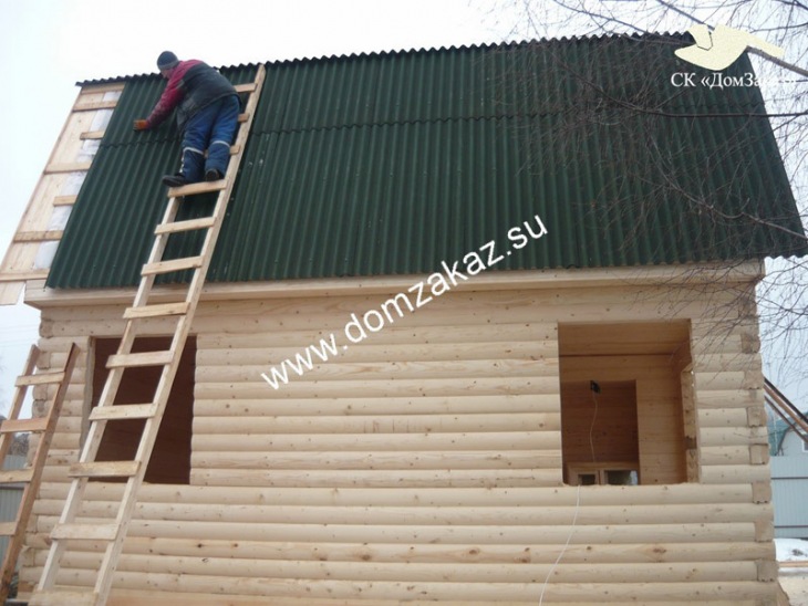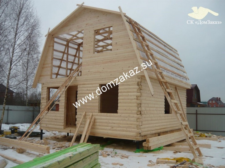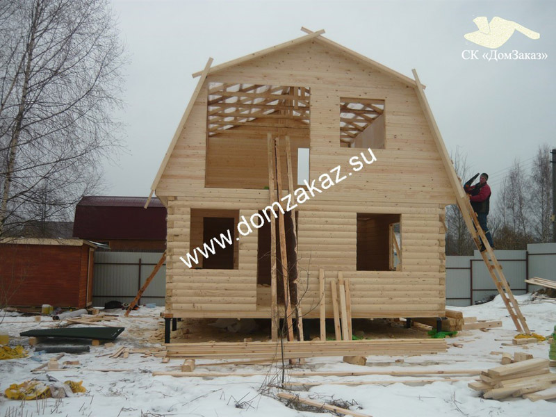Строительство дома 6х6м в Московской области, Серпуховском районе, садовое товарищество "Ланьшино" в сентябре 2014 года. Цена дома из профилированного бруса 140х140мм камернгой сушки с утеплением 100мм 568900 руб., двойная обвязка, строганная шпунтованная половая доска принудительной сушки, толщиной 36 мм, свайно-винтовой фундамент, высота первого этажа 2,5м, заводская обработка силовой рамы и чернового пола антисептиком, теплый угол.