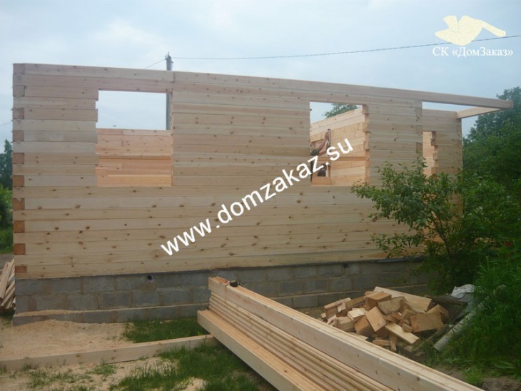 Строительство дома 6х6 м. с террасой и верандой 2х6 м. в Московской области, Солнечногорском районе в июне 2013 года. Цена дома из профилированного бруса 90х140мм 531000 руб., дополнительное утепление до 100мм, кровля металлочерепица, окна ПВХ.