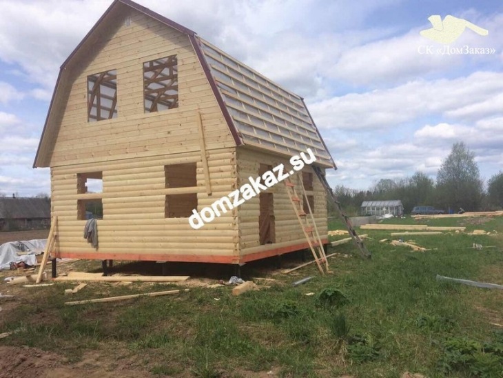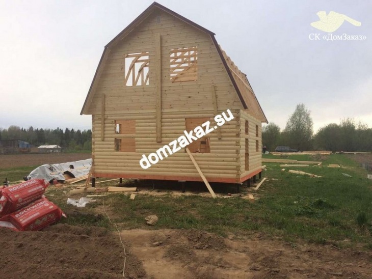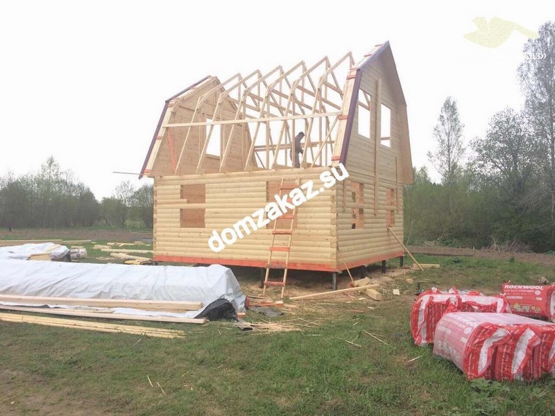Строительство дома 6х6м в Ленинградская область, р-он Волховский, с/п Хваловское, д. Хвалово в мае 2017 года из профилированного бруса 140х140мм, сборка на деревянные нагеля, дополнительное утепление ROCKWOOL - 100 мм, заводская обработка силовой рамы и чернового пола антисептиком, кровля металлочерепица.