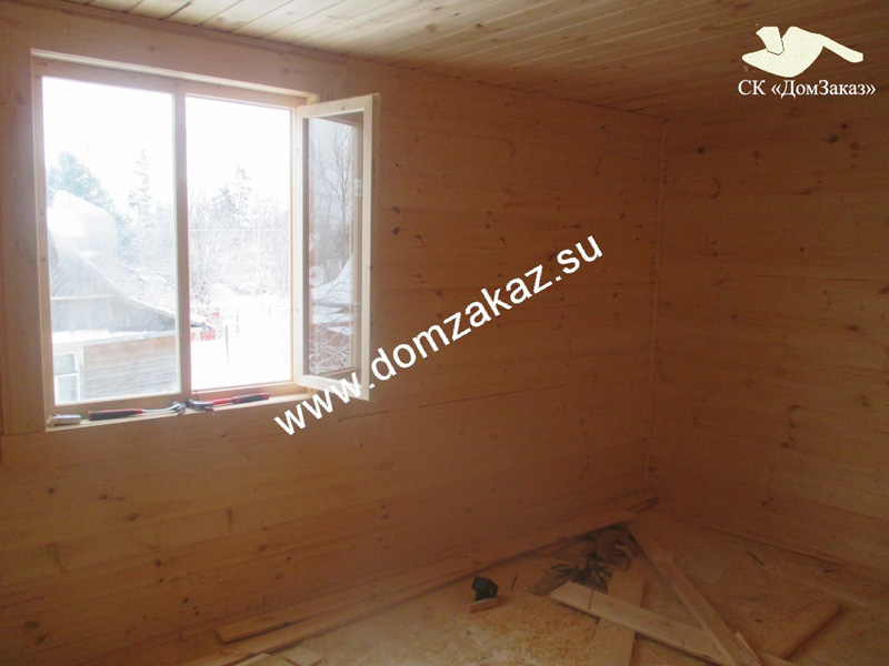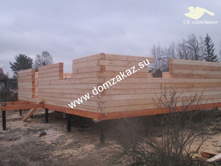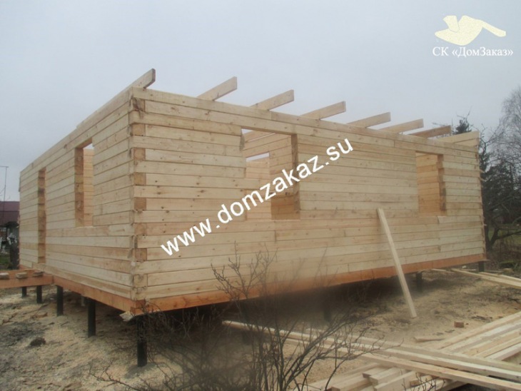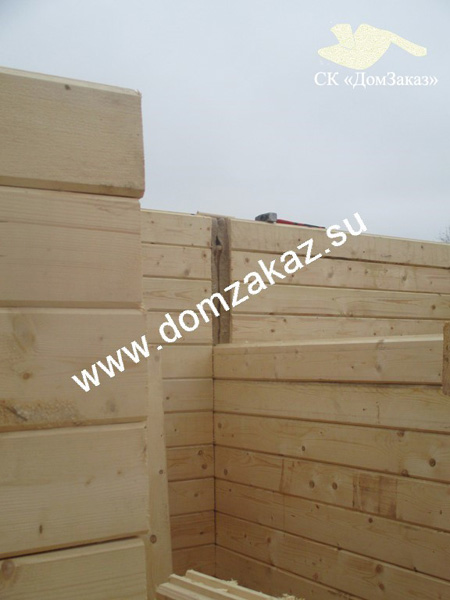 Строительство дома 8х8 м. в Ленинградской области, Ломоносовском районе, муниципальное образование "Ропшинское сельское поселение", садоводческое некоммерческое товарищество "Северный пресс" в декабре 2014 года. Цена дома из профилированного бруса 140х140мм 801000 руб., дополнительное утепление до 100мм, сборка на деревянные нагеля, терраса 2х1,5м.