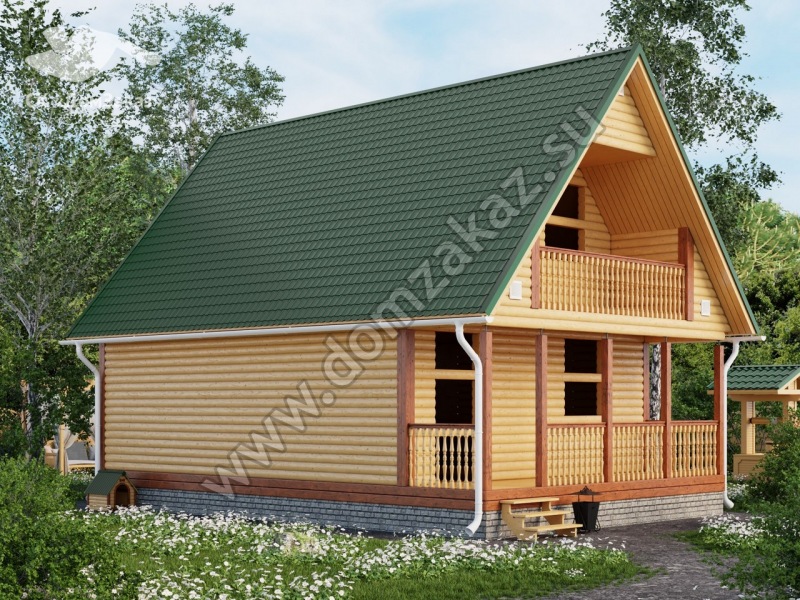 профилированный брус 90×140 мм, 140×140 мм или 190×140 мм (атмосферной сушки), с наружней стороны прямой или под блок-хаус, с внутренней — прямой. |